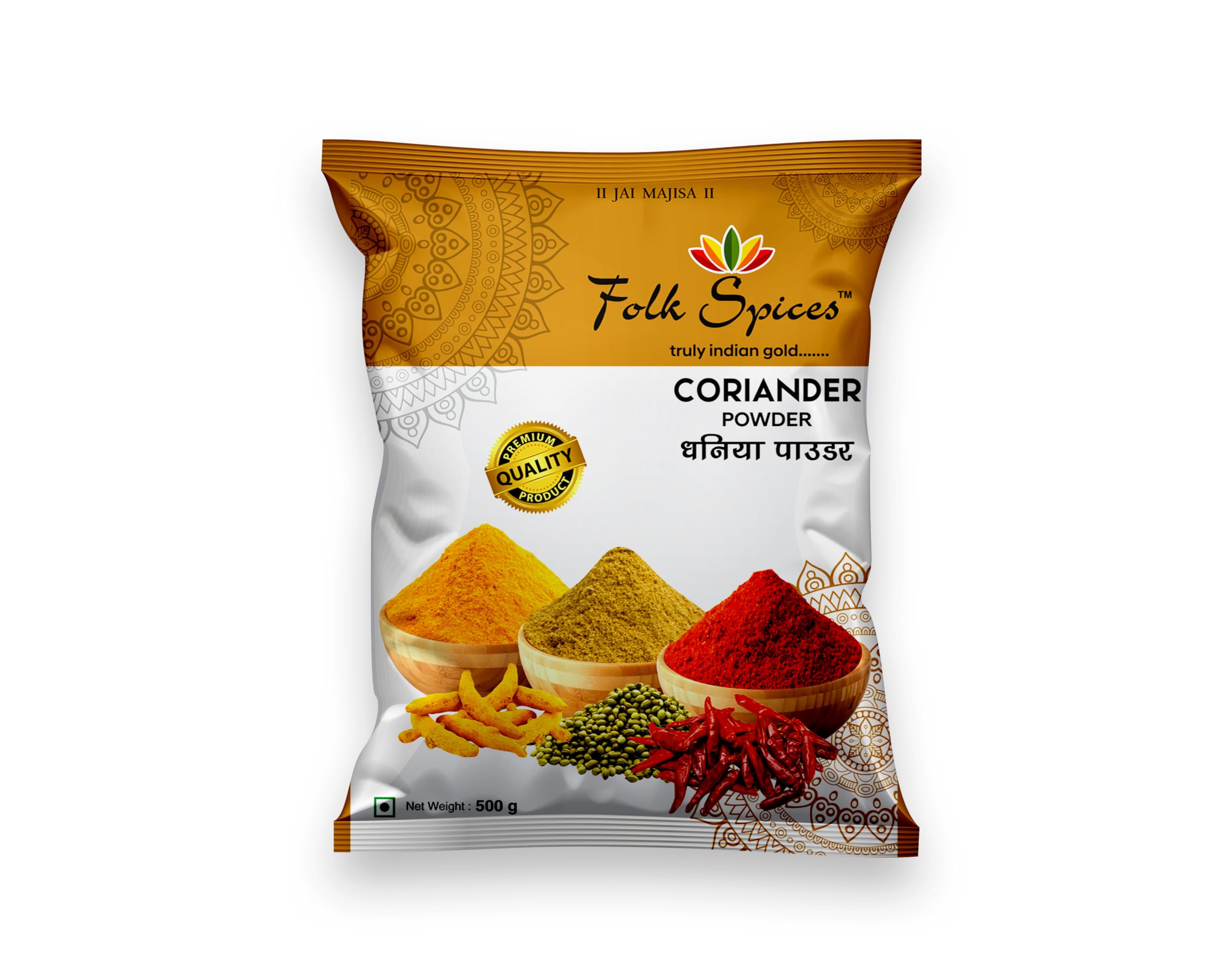 Folk Spices' Coriander Powder is made using premium-quality coriander seeds.